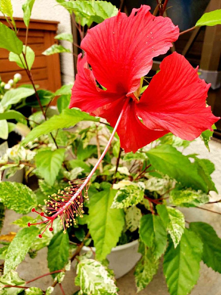 さん、もうどうしようー😰と思うくらいの広がりようで😅他に二本ハイビスカスがあるけどそちらは上に伸びるタイプ!!種類によって違うんですね~😅