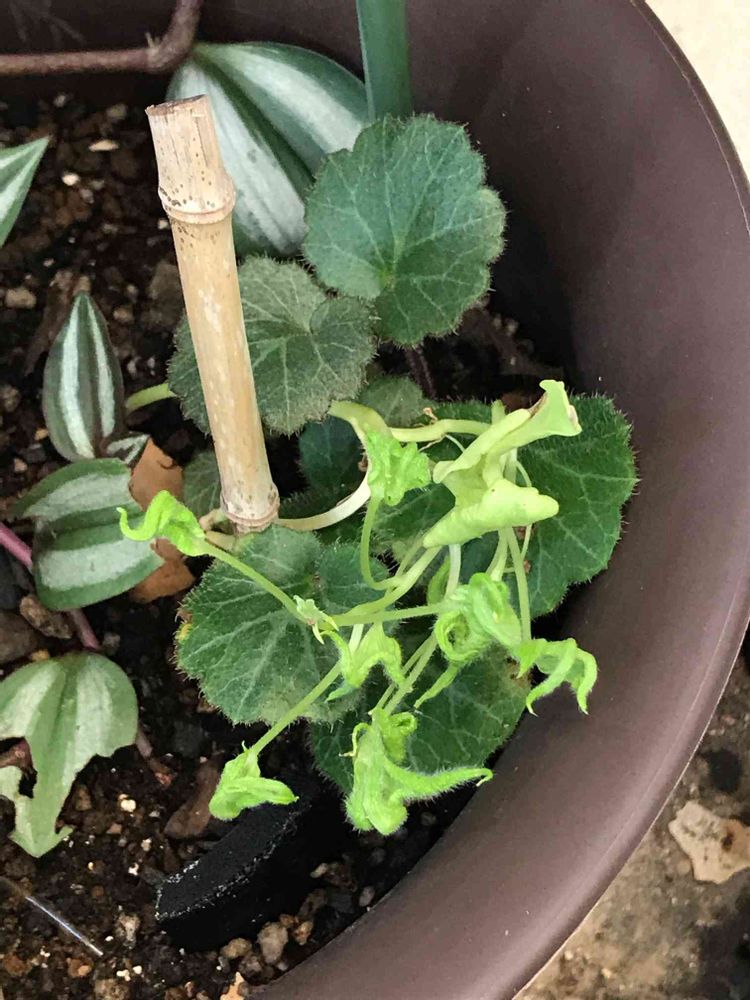 グニャグニャと添木に巻きつくこともせず不思議な育ち方をしてます😓