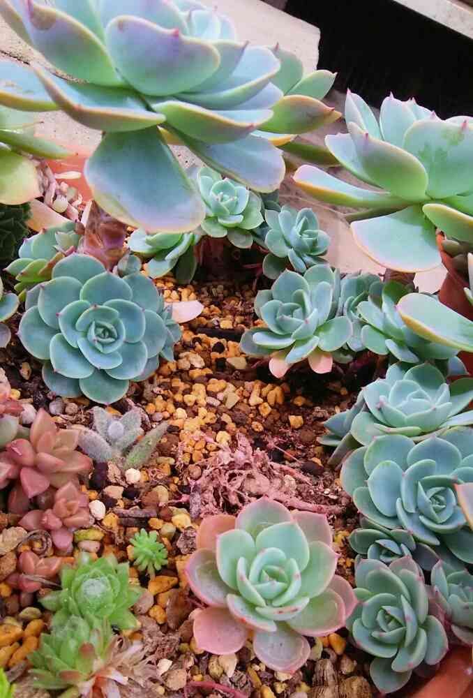 もともとは、お母さん苗をお友達から4個位もらってがはじまりで……もらって半年間でものすごく巨大化したのが去年の秋で……冬は下の葉が枯れて小さくなって……春になり子沢山母さんになったという感じなの……(笑)ヽ(・∀・)ノ