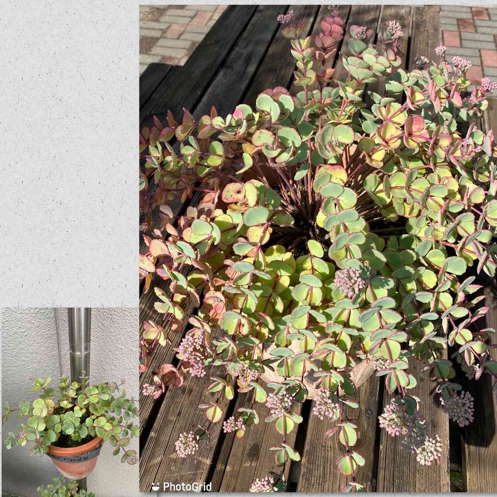 小さなpic.は郵便受けのポールに置いたミセバヤです。日に当たらないので、成長の違いが見えます。