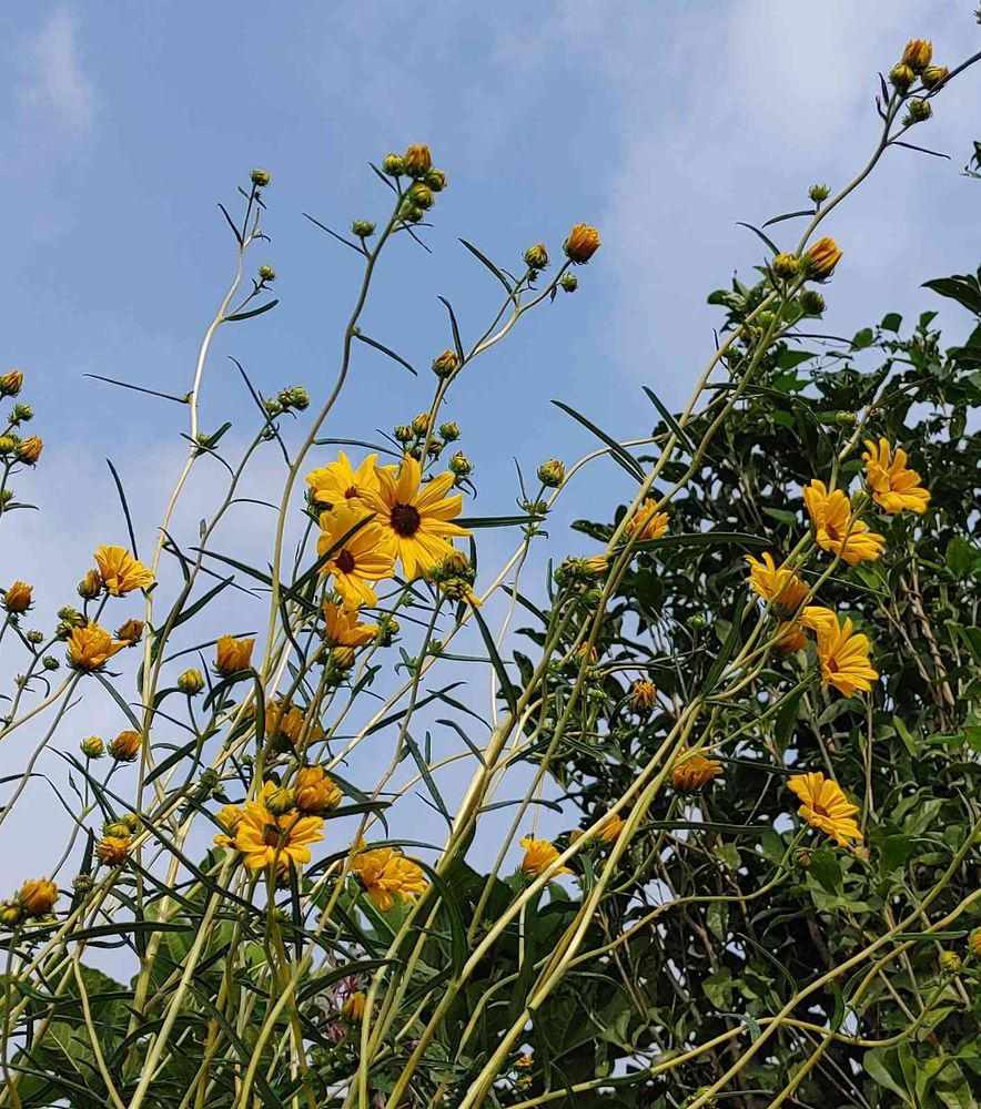 秋空をバックに姫ひまわり🌻さんがきれいに咲いてますね‼️