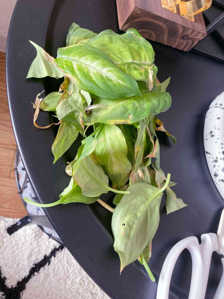 アドバイスをいただいて、ディフェンバキアさんの傷んだ葉をチョキチョキ!泣