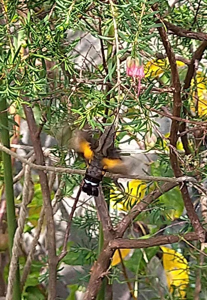 ホバリングしながら長いクチバシで蜜を吸ってるところです🍯