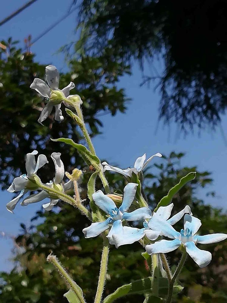 ブルースター、背丈が伸びたので青空を背景に撮ってみました〜🎶💠