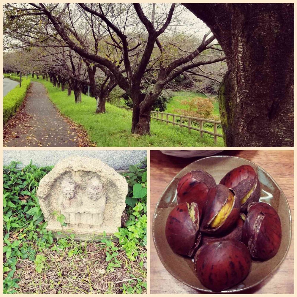 ウォーキングでみつけた道祖神様と大きな焼き栗🌰