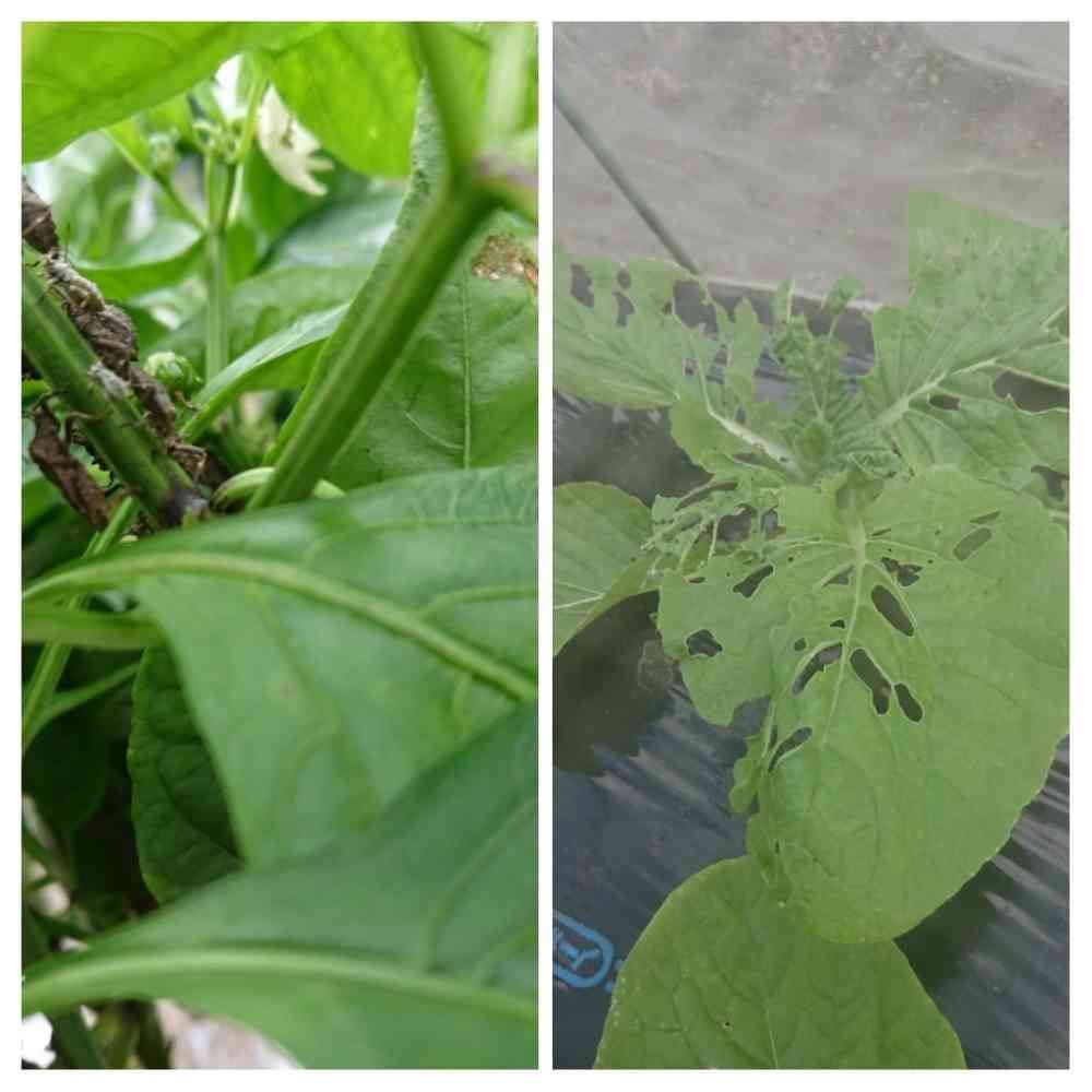 左:ピーマンにたかる害虫、調べたらホオズキカメムシとか