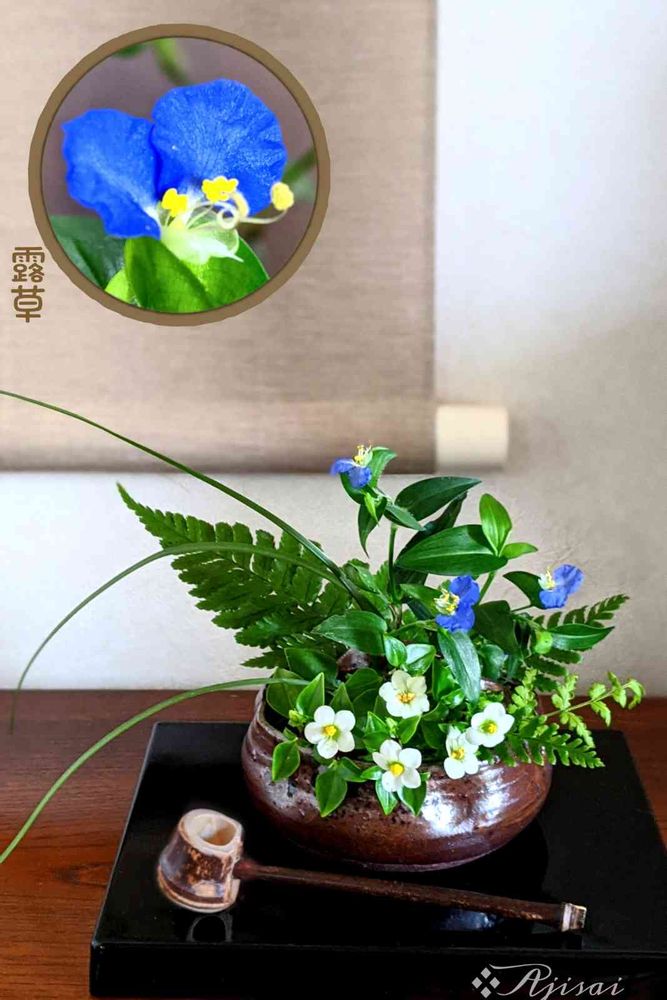 束の間の露草の時間を閉じ込めて、掛け軸と生け花に…両方共に とっても素敵💙
