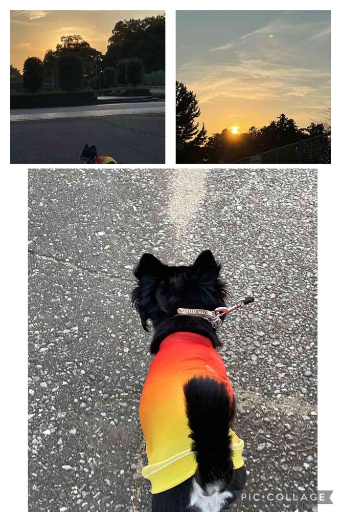 夕焼けとラッキーの洋服がマッチしましたか😂