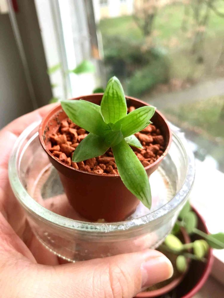 「こんにちは。ハオルチアは間違いないないと思いますが、ハオルチアは種類が多く断言出来ませんが、シンビフォルミスでしょうか。」かも!