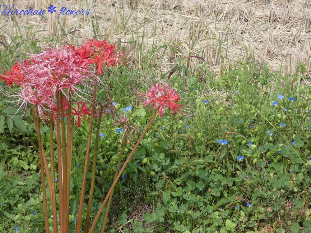 昨日同じ場所を通ったところ、彼岸花は咲き終わりを迎え つゆ草は周りで 元気に咲いていました。