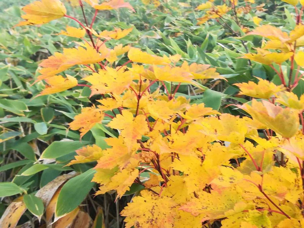 秋は紅葉、黄葉と同じ樹種でもその環境により様々ですね!ミネカエデやムシカリが真先の色づき!