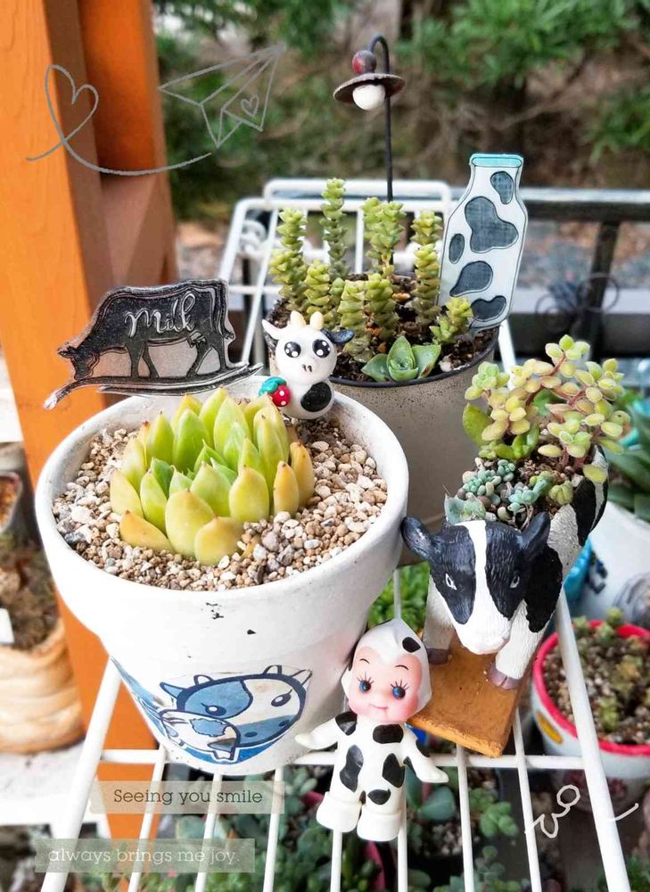 🐮さんのリメ鉢、🐮さんQP
