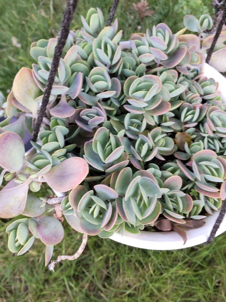 最初は他の多肉と並べて配置していたのですが、徒長もあってか、垂れてきて吊り下げに変更。