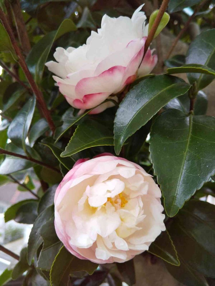 一枝だけに2輪咲いてました。私もびっくり、ちょっと早いですよね😄