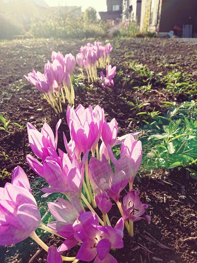 秋の日差しを浴びて気持ち良さそうなコルチカム。