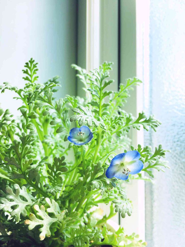 窓辺,ネモフィラ プラチナスカイ,癒しの投稿画像