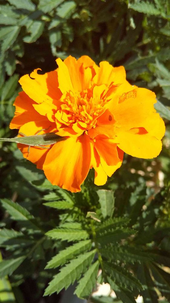 本日の「マリーゴールド」、オレンジ色のお花にバッタのベビーがいます。🧡👶😄🌞🌿✌️