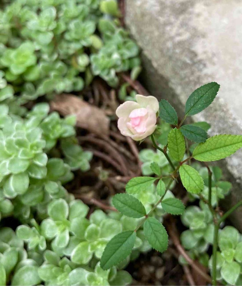 10センチにもみたない薔薇の小枝の蕾でした💕剪定した枝が自然に根付いたのでしょうか😅