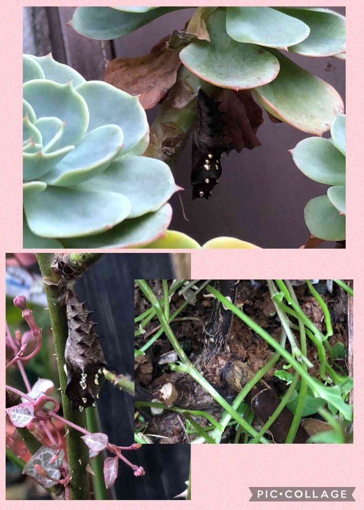 昨日のサナギちゃんはそのままで…今朝は思いがけない場所でサナギを2つ発見∑(*º口º*)!!