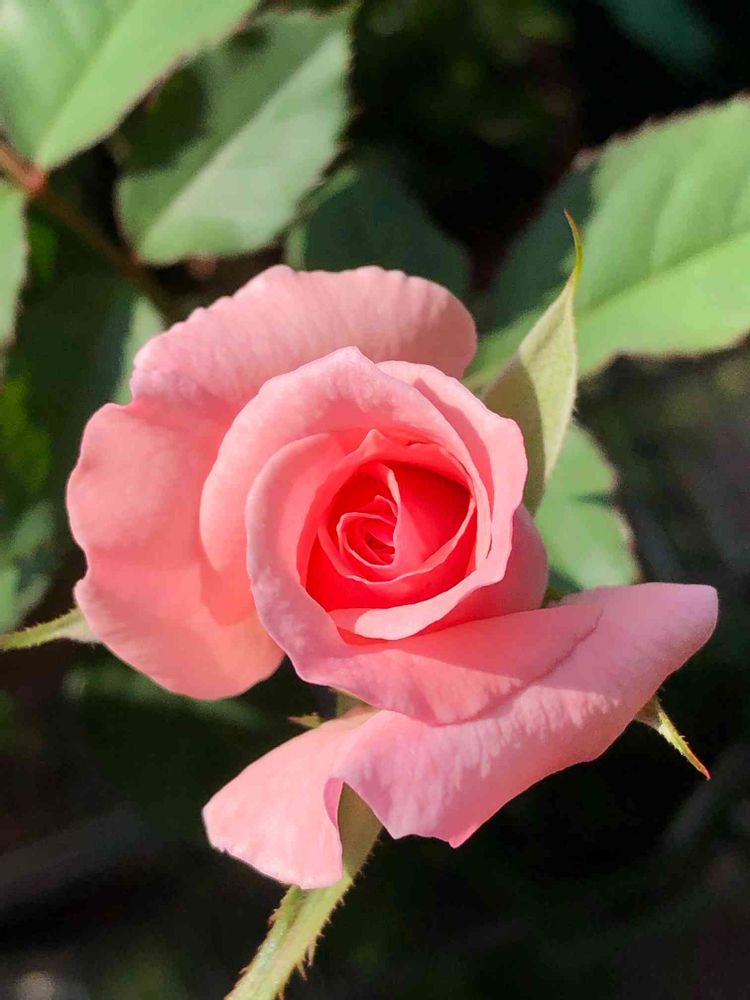 今朝のブライダルピンクも美しく咲いてます。朝日にあたって鮮やかなピンク。