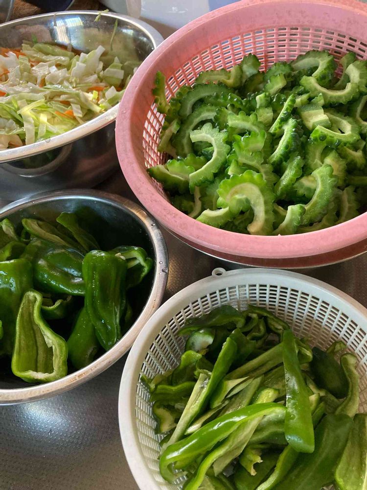 ゴーヤ塩茹で、ピーマン🫑は生で冷凍しちゃいます😃🎃🎃🎃🎃