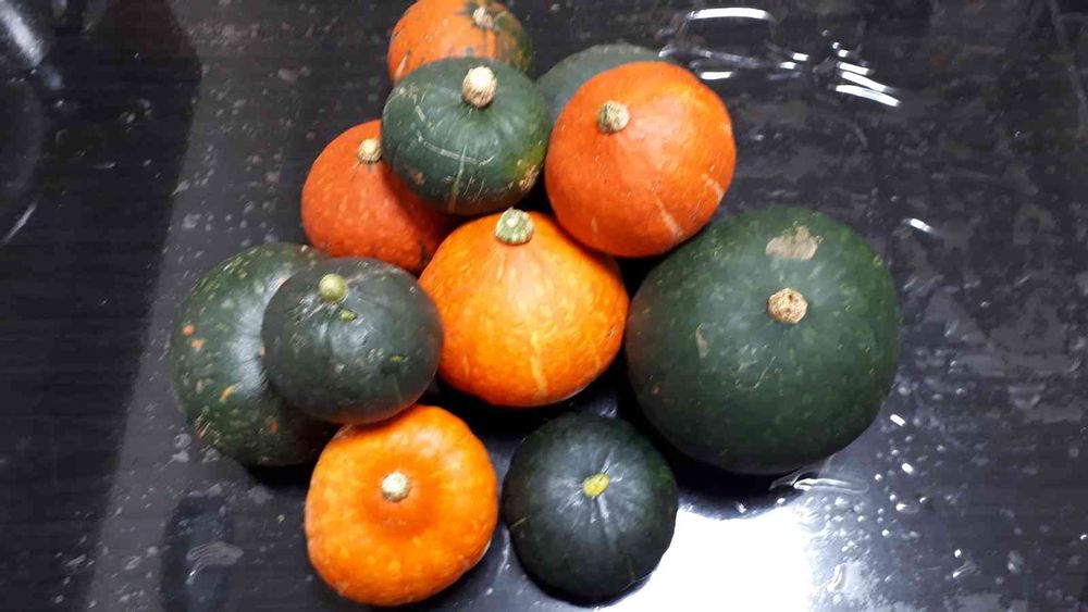 オレンジ色の肥後の国南瓜と坊っちゃん南瓜、サラダ南瓜とお店で買った緑色の南瓜の4種類の種を撒いたけど🤔⁉️
