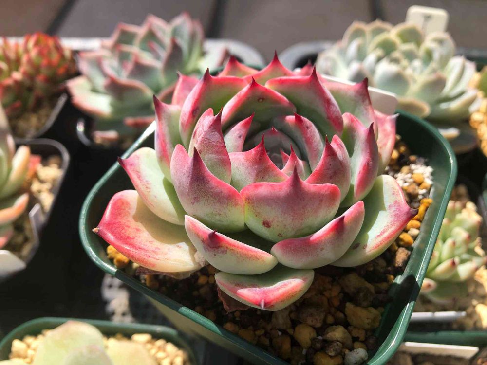 秋の日差しと、夜の冷え込みで赤くなりましたよー。過酷な環境の方がキュッと締まりますね。維持できるように頑張ります! 一緒に多肉LIFE楽しみましょうね😁