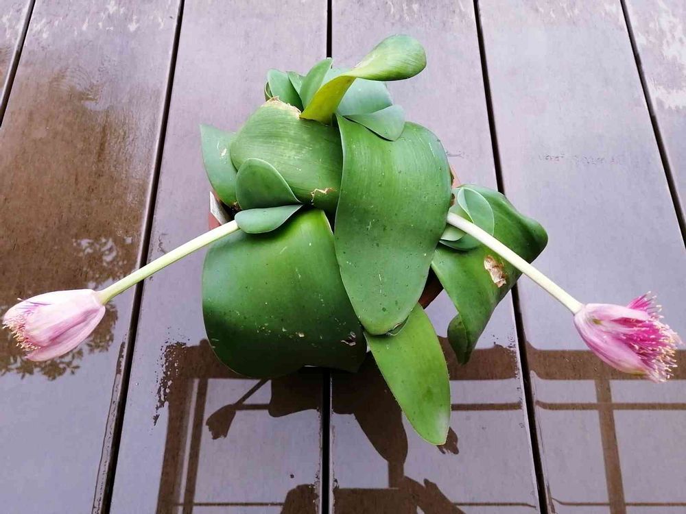 白のマユハケオモトを初めて見たとき、そのユニークさに釘付け👀‼️それから間も無くしてこのピンクちゃん🌸に出会ってしまい、連れ帰りました❤️