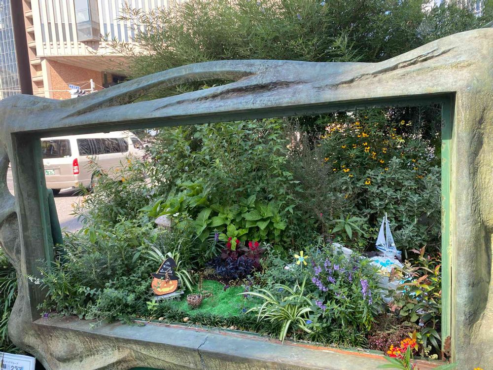 そうなんです🤩フラワーロードの額縁花壇で花と緑のまち推進センター職員のデザイン、手作り作品だそうです。美容室帰りに撮影✨
