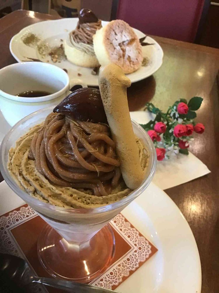 今日は デザートは 、 マロンパフェ に 、マロン シフォンケーキ でした ❣️