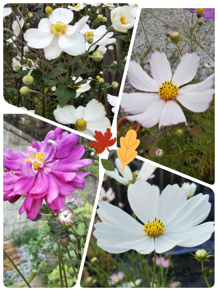 秋のお花たちだねぇー🌸八重の秋明菊と縁っ子ピンク💗のコスモス。