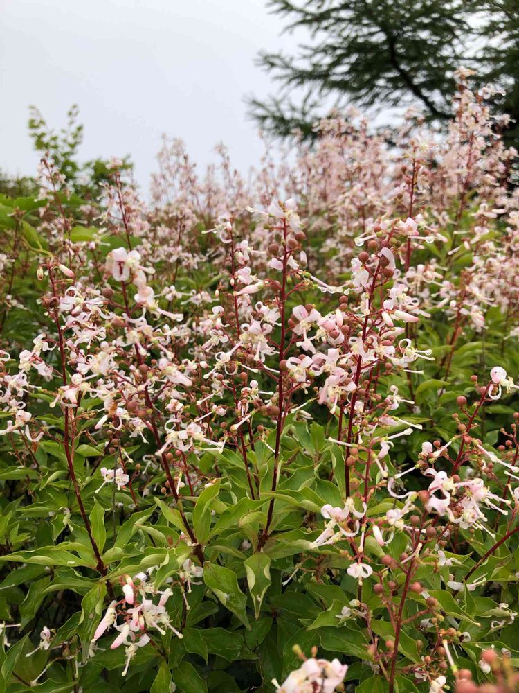 登っていると、登山道に小さな白い花がいっぱい咲いていた。
