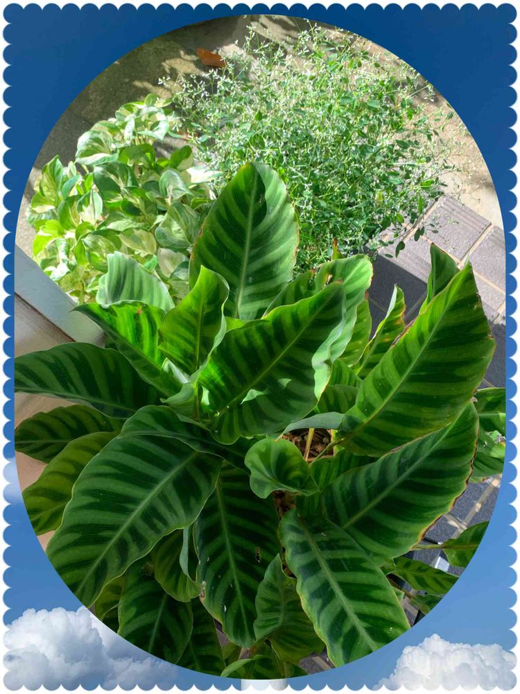 手前のやっと名前が分かった『カラテア セブリナ』室内に置いた方が良いみたいちょっと葉先が枯れてしまってる( ̄▽ ̄;)