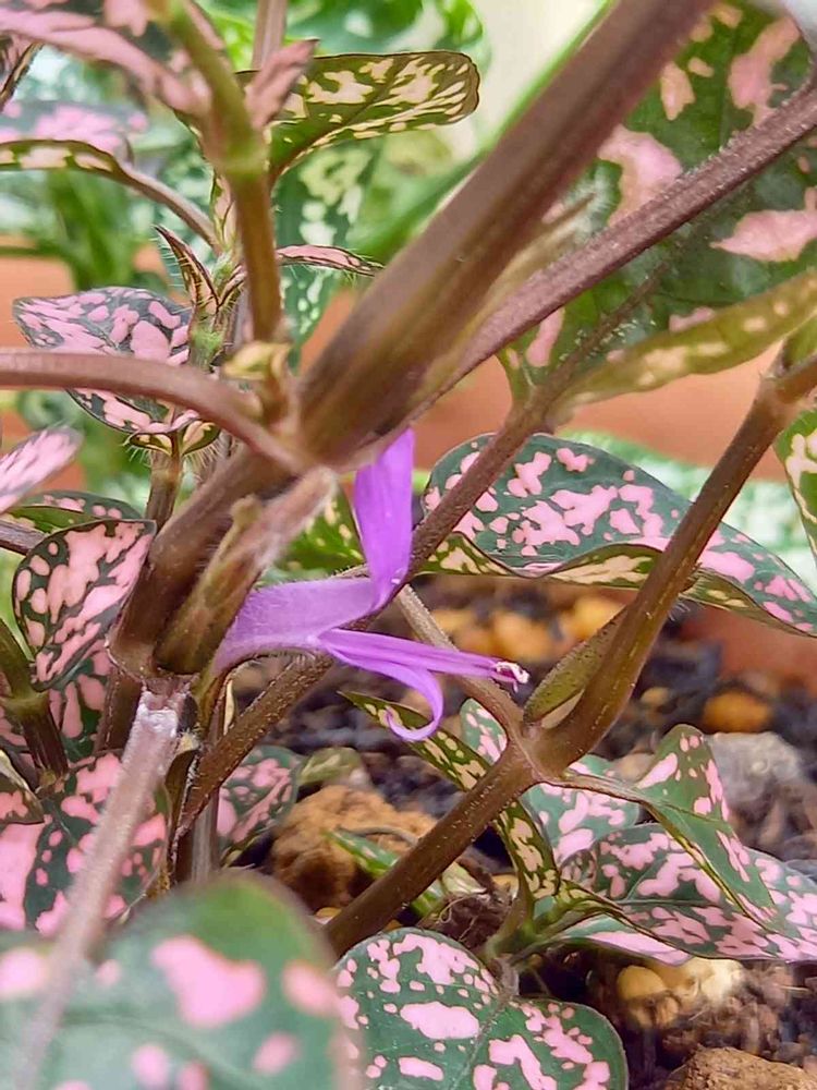 発見‼️この色にも お花!先日は白でした😆葉の色によって花の色も違うんですね😊可愛い💕