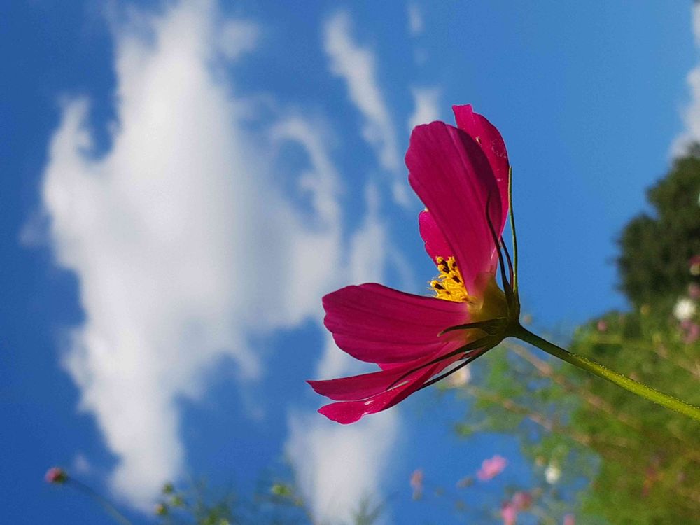 さん、花と青空がある光景が好きなんです。どの花も青空が似合うと思います。私は、青空だけが好きですが、人によっては白雲がある方が好きといます。両方を投稿して見ました。貴方は、どちらが好きですか?
