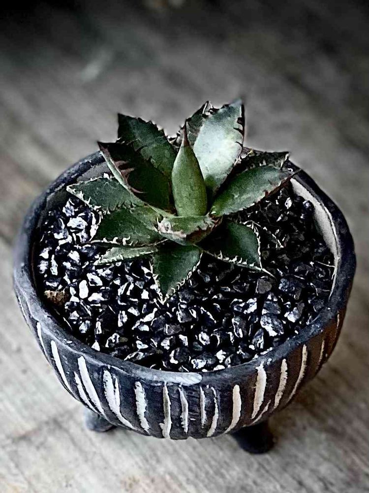 初めてのアガベですが、やはり魅力的ですね💕鉢もお手頃なものを見つけるとつい買っちゃいます。植物との組み合わせ考えるのも楽しいですね。