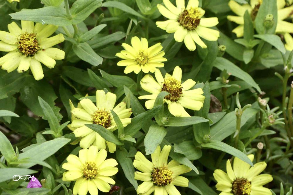 秋の陽気にジニア プロフュージョン レモン咲いて来た。