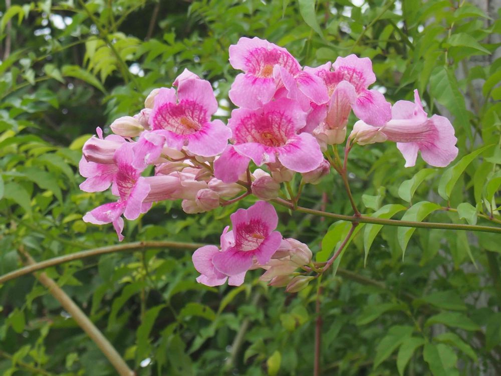 ピンクのノウゼンカズラ初めてみました。ありがとうございます。