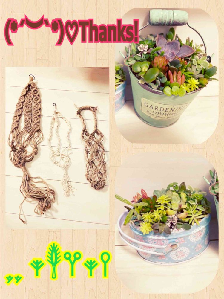 誕生日プレゼントに お友達が手作りマクラメと寄せ植えを送ってきてくれました*°♡