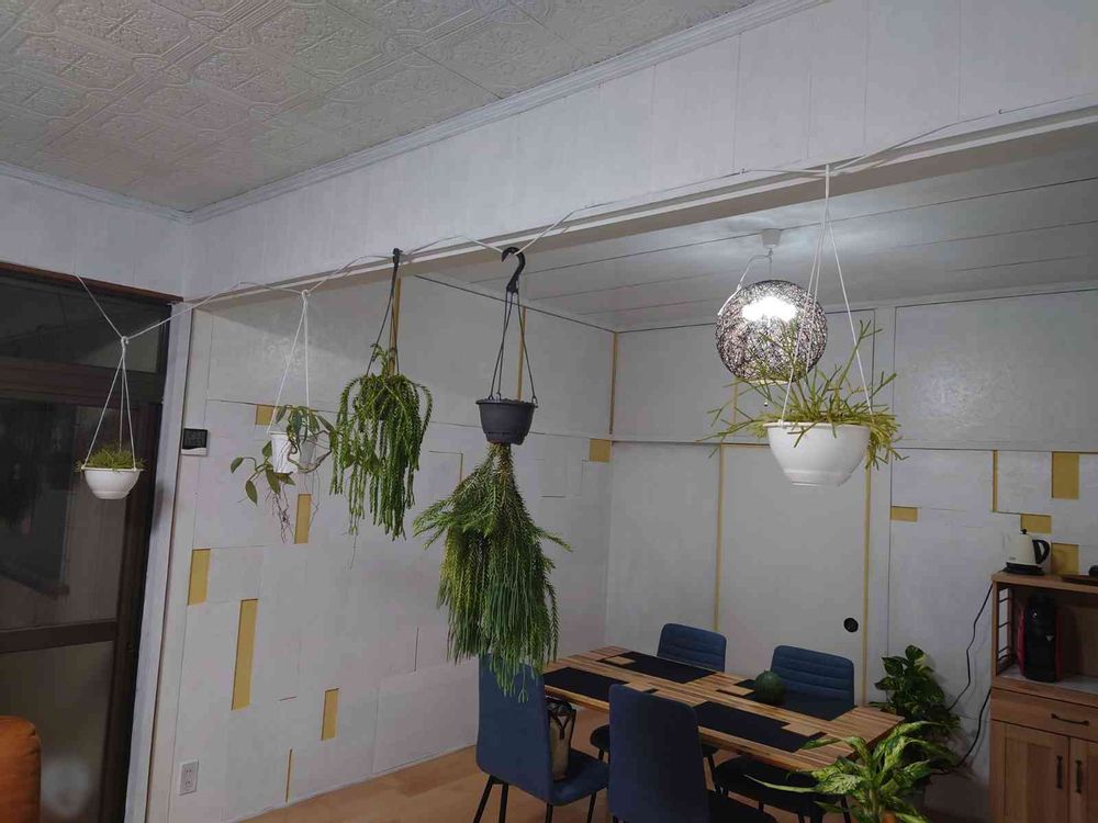 こんばんは🌸頭当たりそう〜動線考えて下げて有るので大丈夫ですよね😅