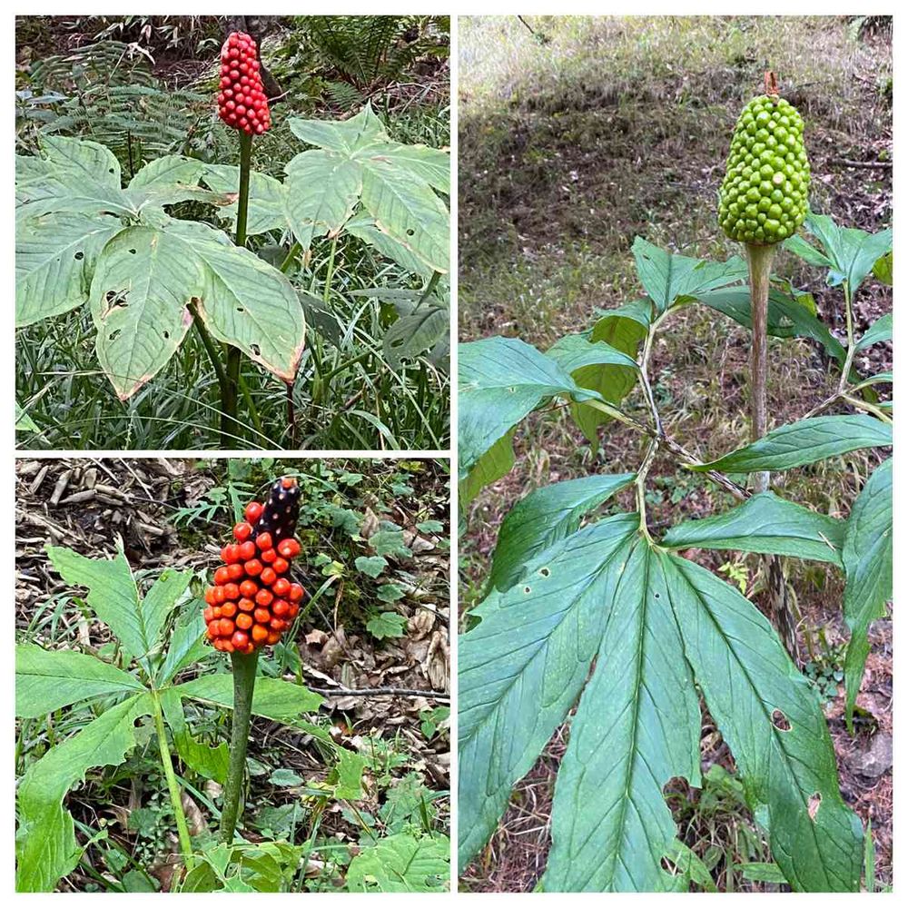 右のがマムシグサで、左が上下同じでミミガタテンナンショウ。の感じです。