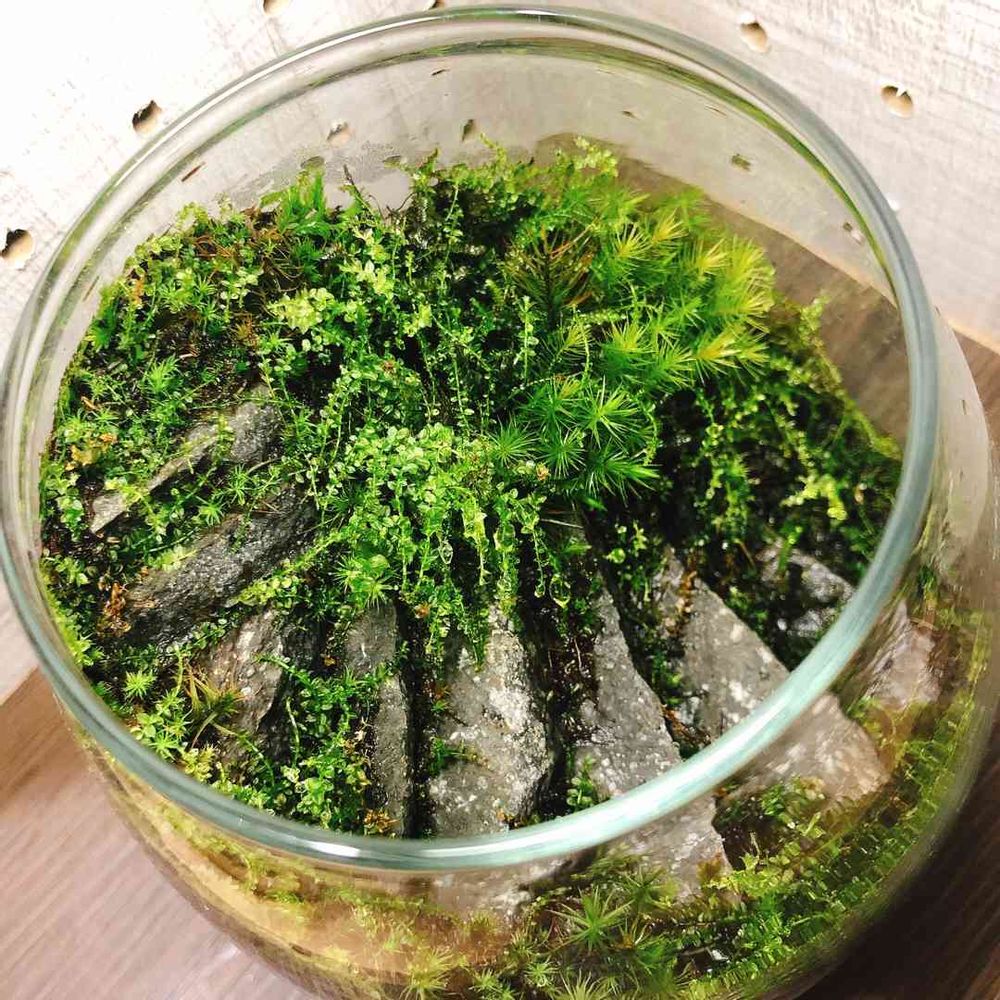 4月に作った階段苔テラリウムもじゃもじゃに茂っております😌