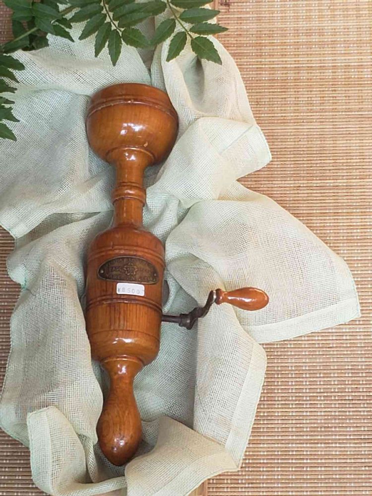 手動マッサージ器、山椒が添えられていたので 山椒の実を挽くスパイス入れかと思いました💗 ハンドルがついているし…