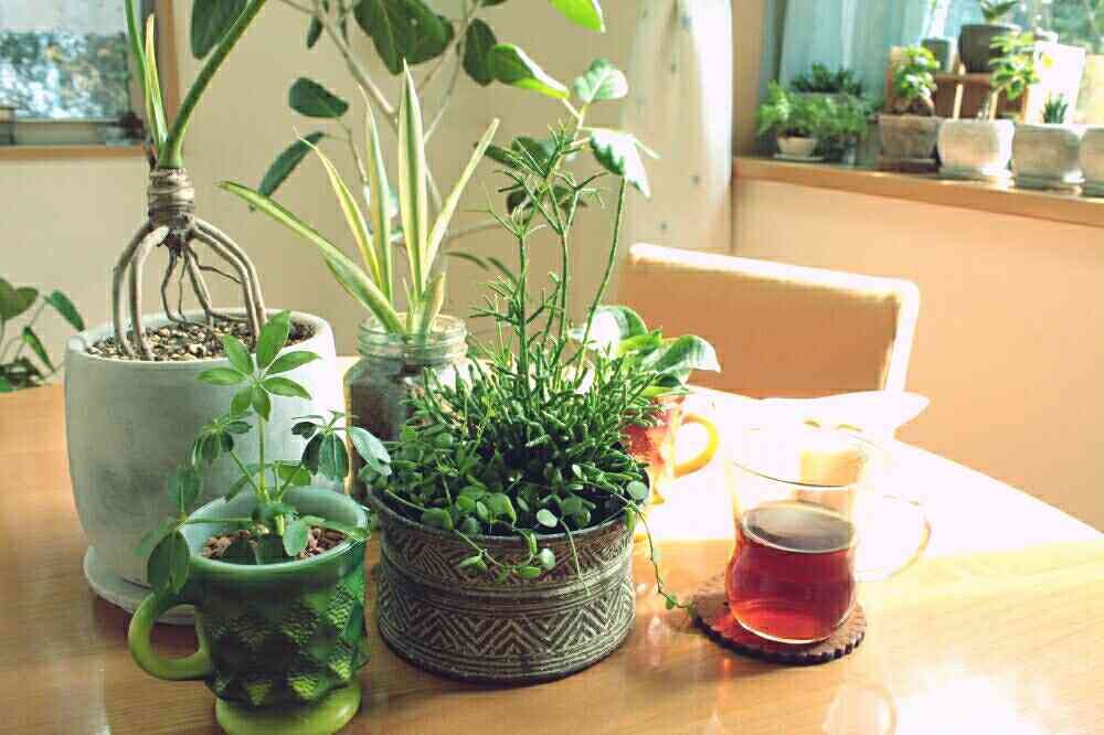 ダイニングテーブルの真ん中に、ちょっと植物を集めて、tea time。