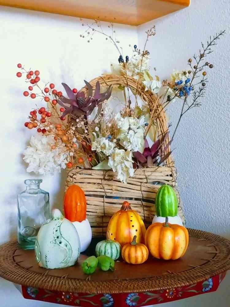 籠の中は作りためてるドライフラワーをさくっと挿してるだけです