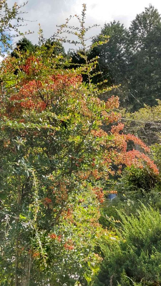 庭のピラカンサの実がだいぶ色付いて来ました🟢🟠🔴