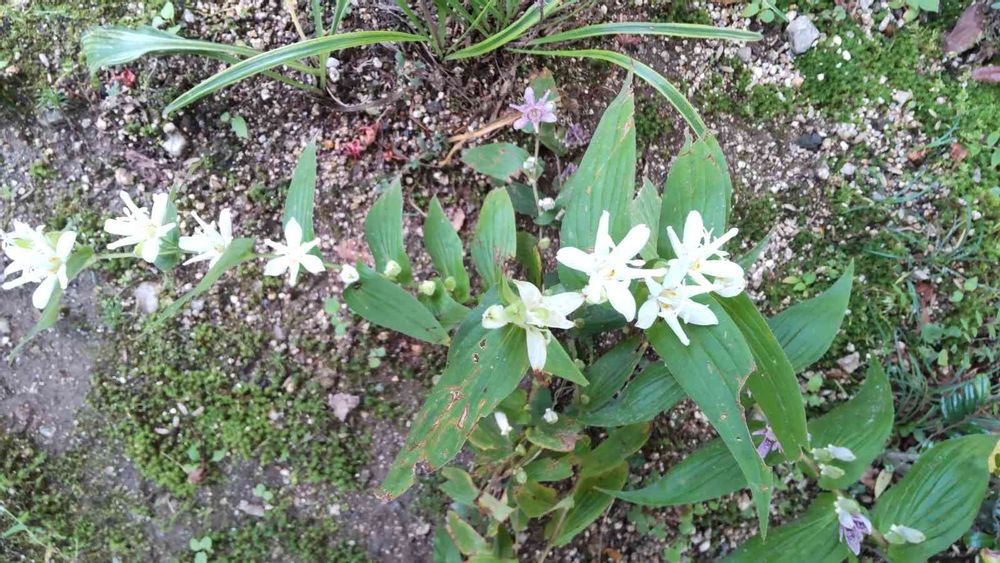 お出かけ先の庭園の真っ白なホトトギスの花💮