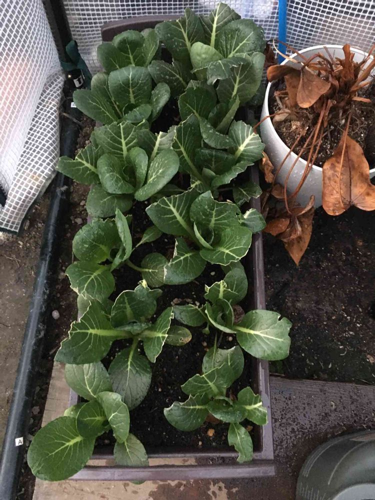 小松菜!葉っぱが鳥に食べられたのでハウスに入れました( ̄◇ ̄;)