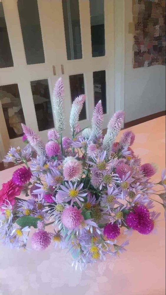 シオン、ホルン、千日紅も皆優しい色だからね😃💐💕