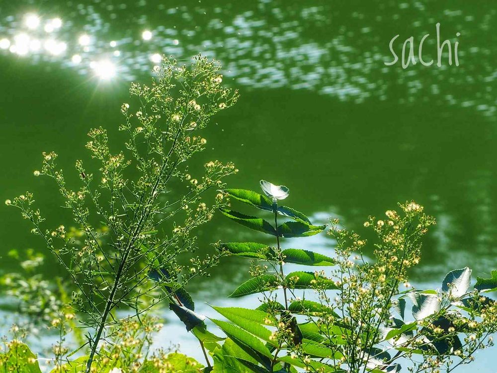 キラキラの水面に負けずに「ヒメムカシヨモギ」も光る✨😄🍀